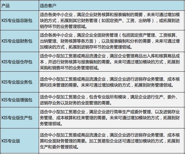 金蝶KIS專業(yè)版系列產(chǎn)品包適用客戶: